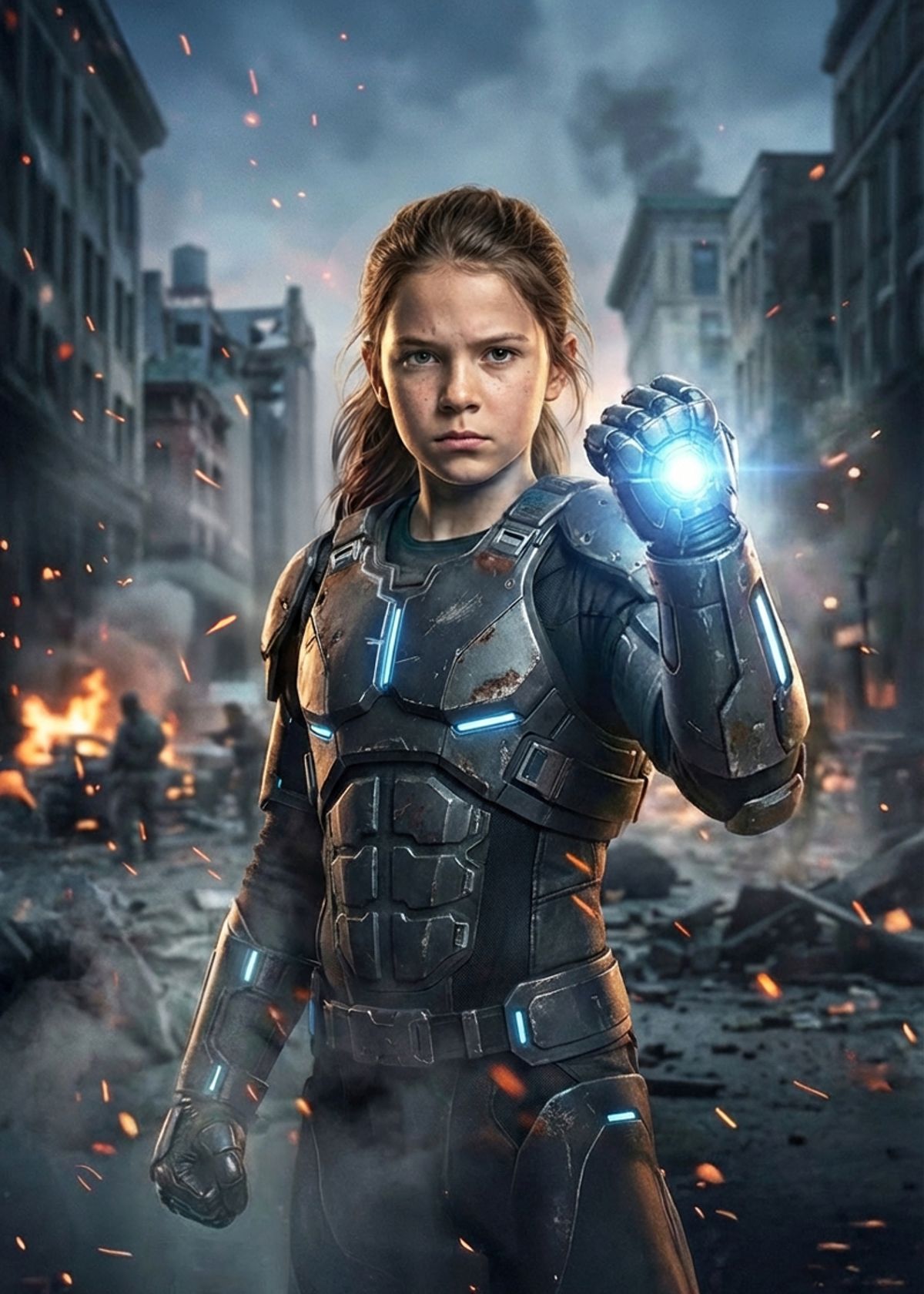 Suit up and swap your face onto this armoured hero scene for a full-throttle entrance worthy of saving the whole city.