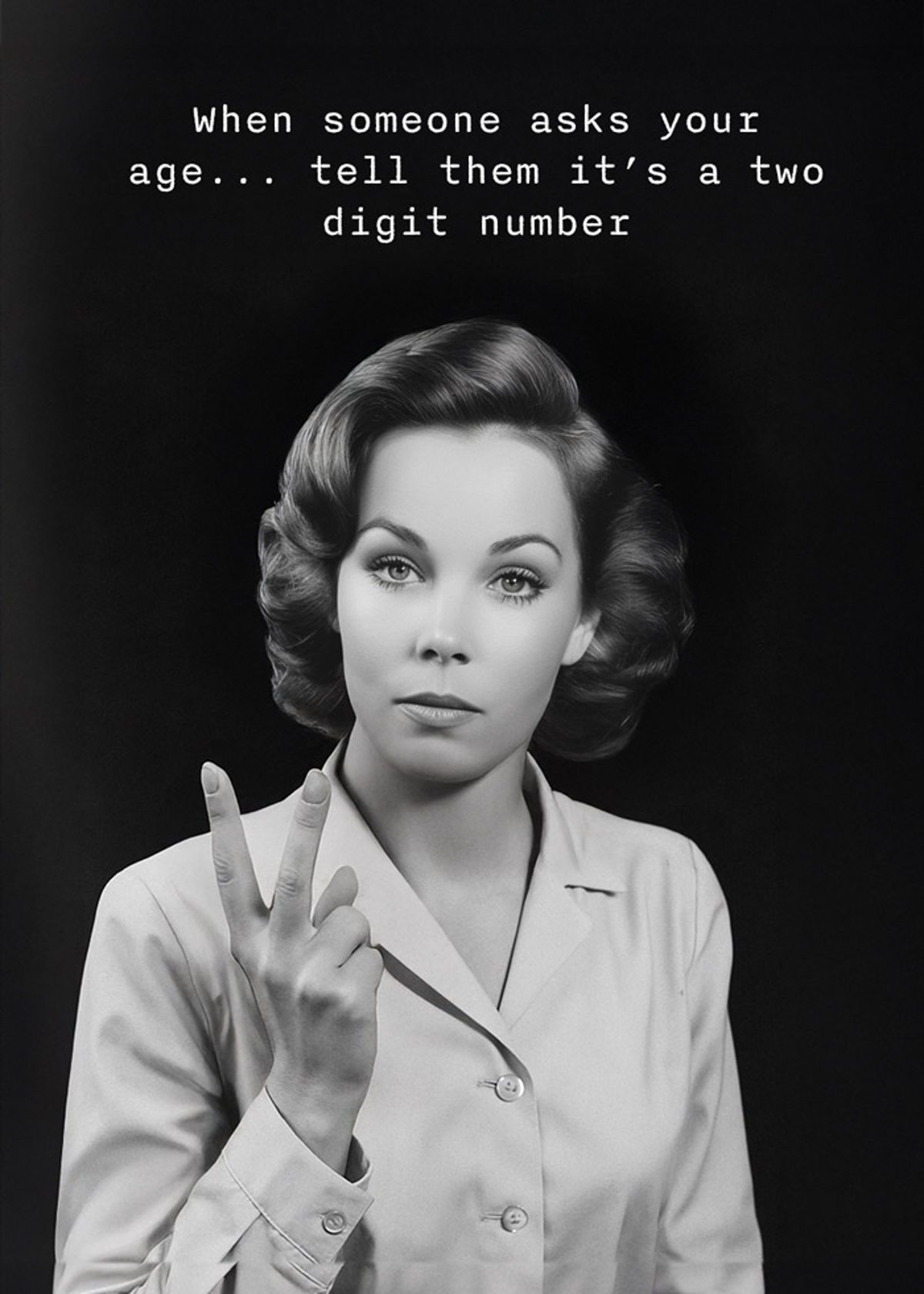 Still counting in style. Swap your face onto this vintage beauty and deliver the ultimate two digit age joke with a perfectly straight face.