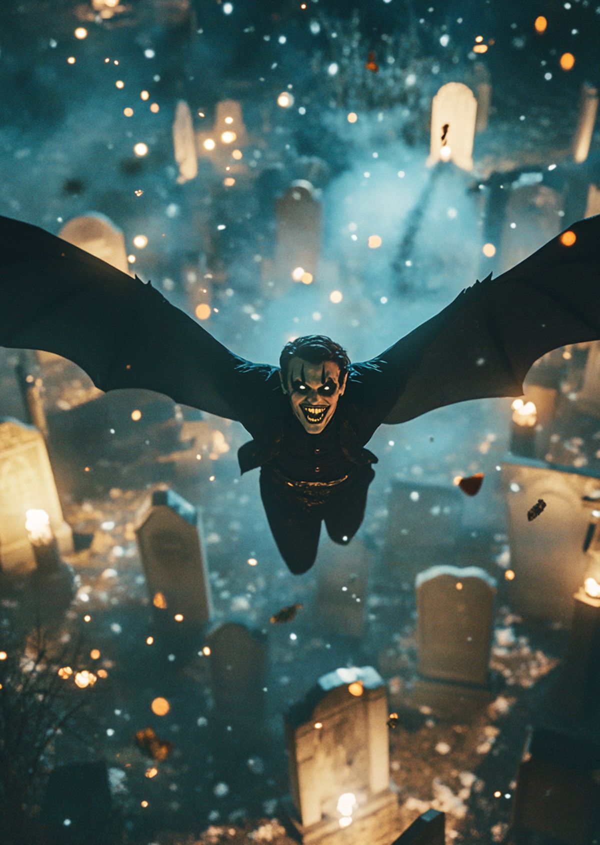 Sink your teeth into the spotlight. Swap your face onto this winged graveyard fiend and own the night in full gothic glory.