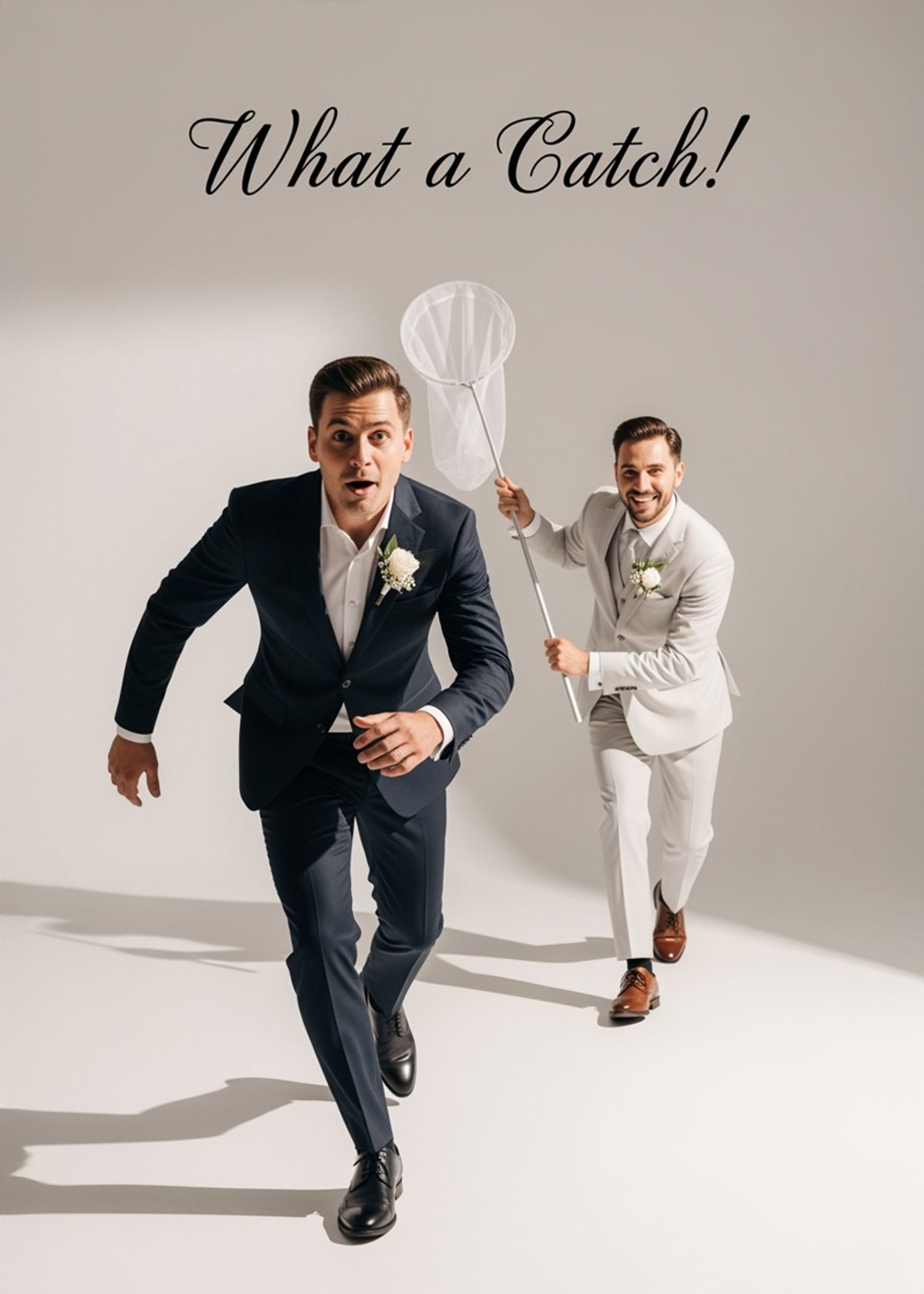 Hook the biggest laugh of the day by swapping your face into this cheeky wedding chase and proving who really is the catch.