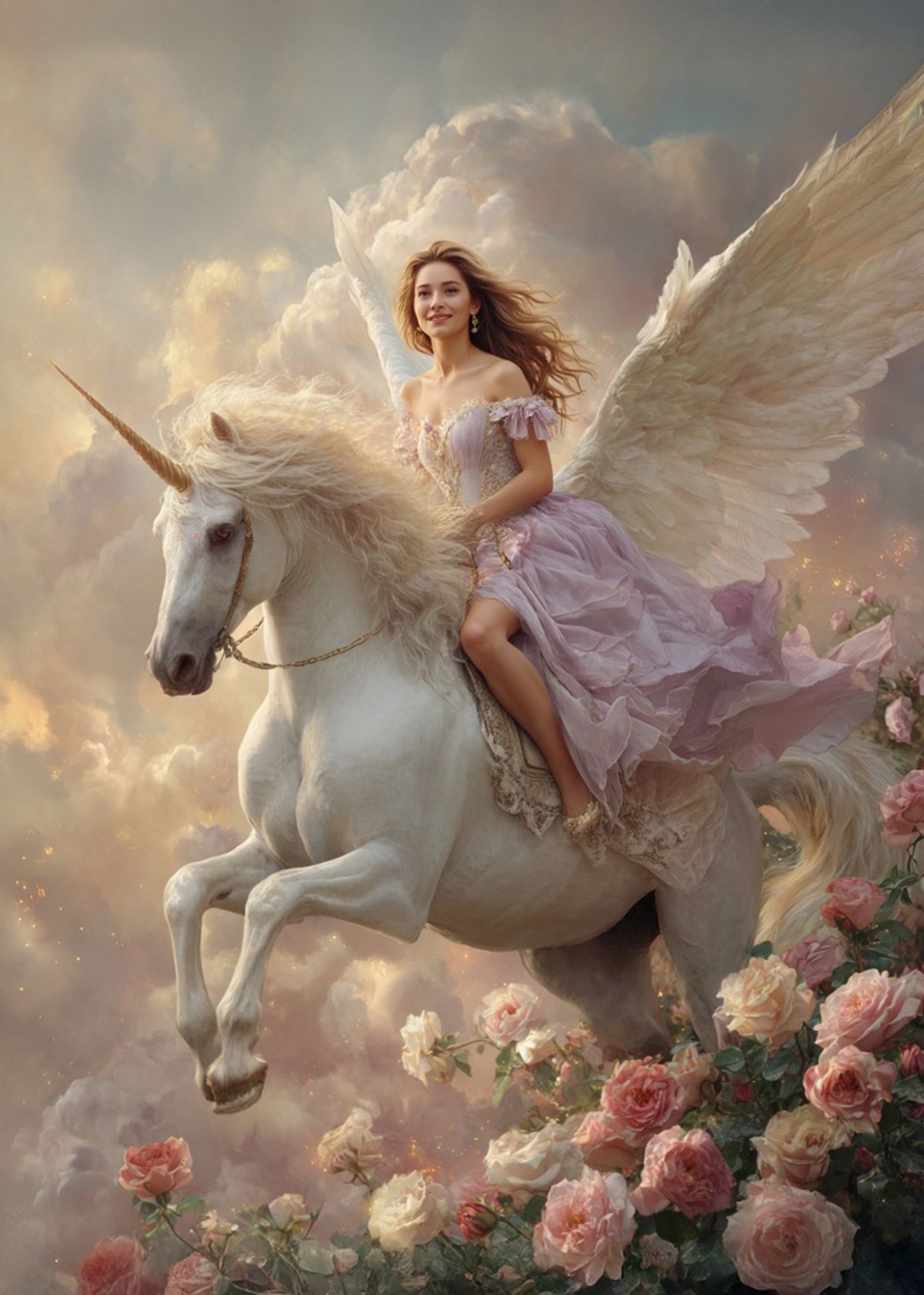 Main character energy, but make it magical: swap your face onto this winged unicorn rider and soar straight into fairytale legend.