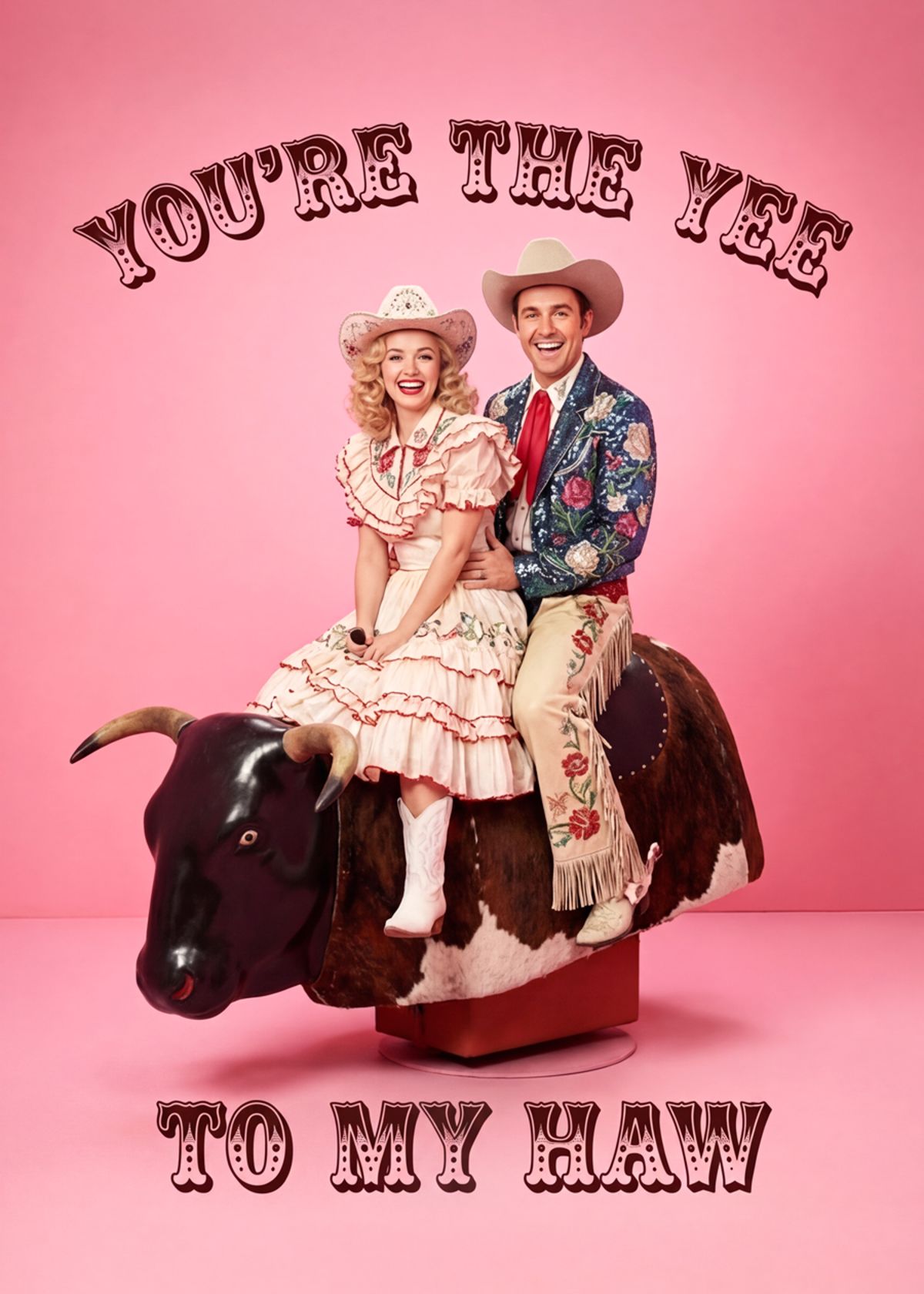 Saddle up and swap your faces onto this loved-up cowboy duo for a rom-com worthy western moment with extra yeehaw energy.