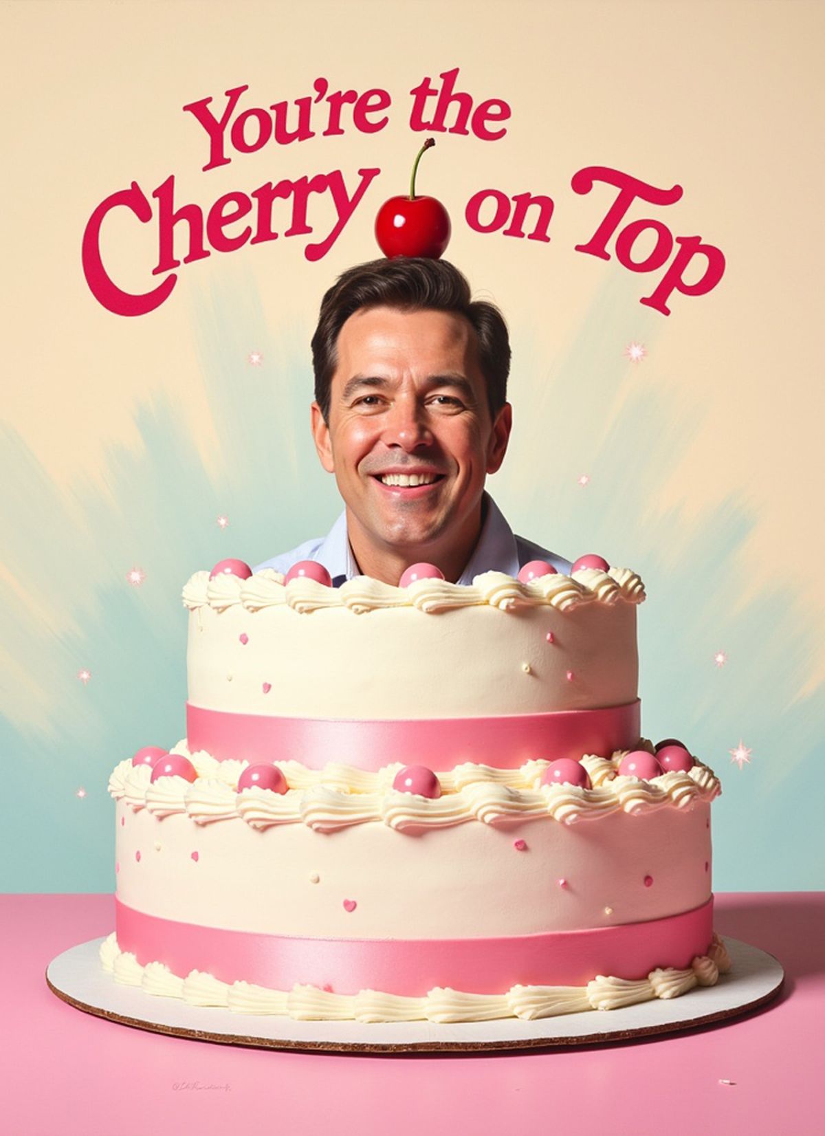 Sweet, silly, and impossible to ignore. Swap your face into this towering cake scene and take the compliment quite literally.