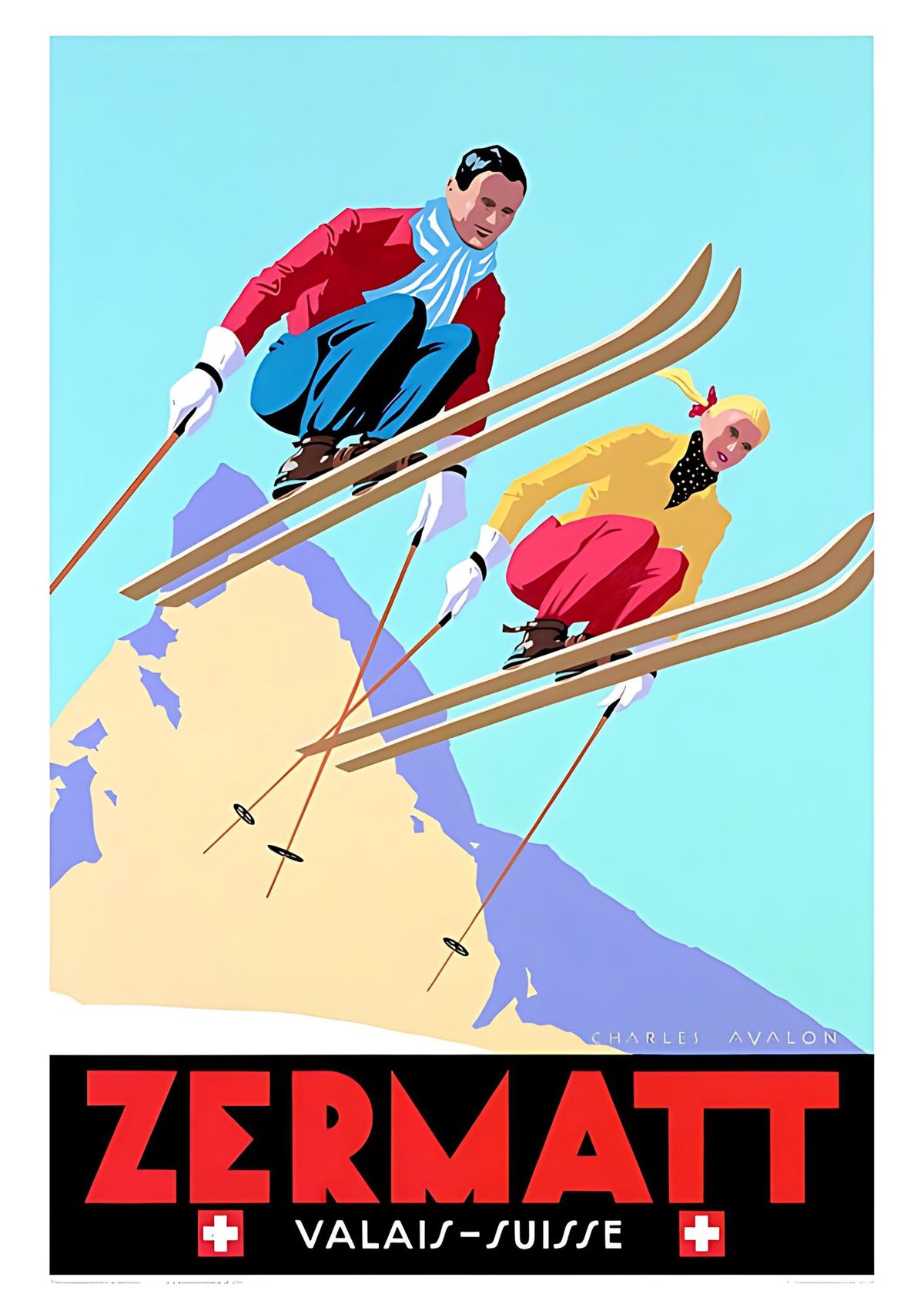Swap your face into this vintage alpine ski scene and carve into Zermatt like the star of a golden-age winter getaway.
