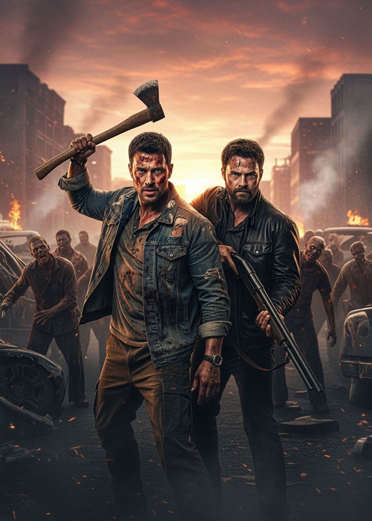 Outlast the undead in style by swapping your face into this chaos-fuelled survival scene and becoming the one everyone follows when the world falls apart.